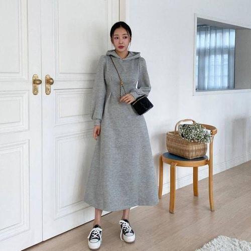 [에이치플러스몰]후드 여성 원피스 하객 뷔스티에 휴양지 반닌투