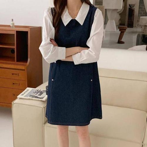 [에이치플러스몰]데님 온나핏 여성 하객 뷔스티에 랏타친 원피스