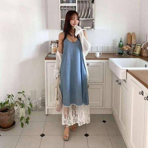 [에이치플러스몰]데님 뷔스티에 원피스 온나핏 여성 여름 끈 쉬