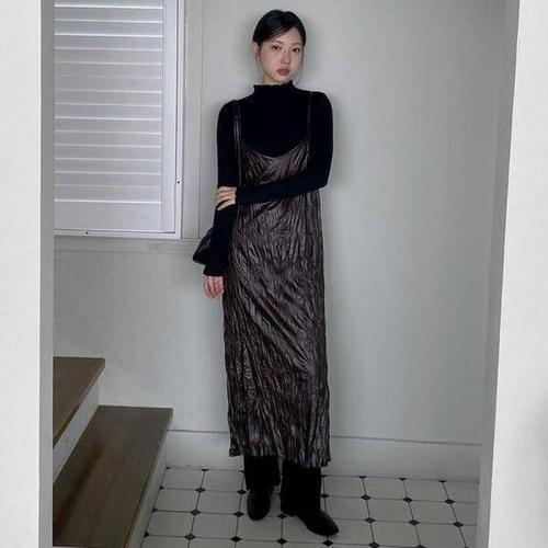 [에이치플러스몰]원피스 뷔스티에 끈 셔링 나시 골지 트위드 롱