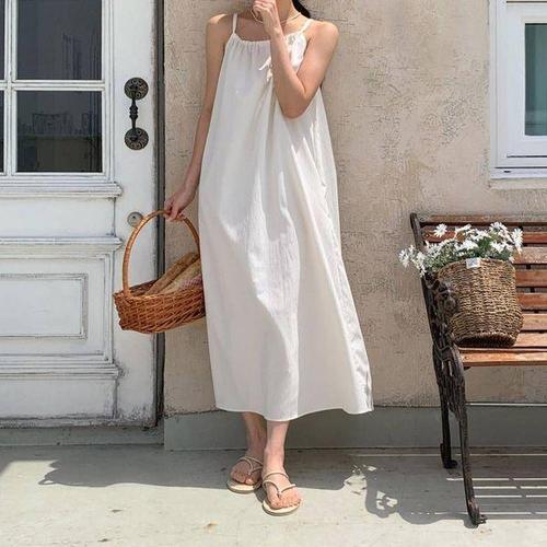 [에이치플러스몰]여성 뷔스티에 휴양지 온나핏 미니 나시 롱니트