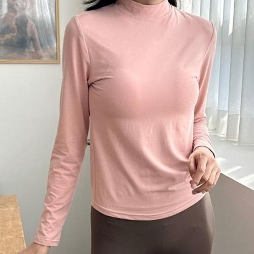[엄지척]베이직 여성 노브라 패드 내장형 폴라넥 티셔츠_19644671_667501