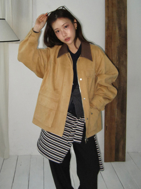 [하시에] [여름 PICK] (2차 리오더) 인조 가죽 카라 스웨이드 워크 자켓 [베이지] [브라운]