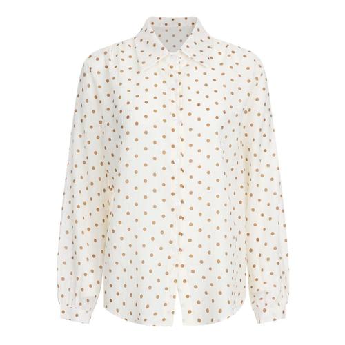 [샵앤][샵앤] 여성 카라넥 도트 긴팔 땡땡이 셔츠 블라우스 EGG-WBL-20770-브라운