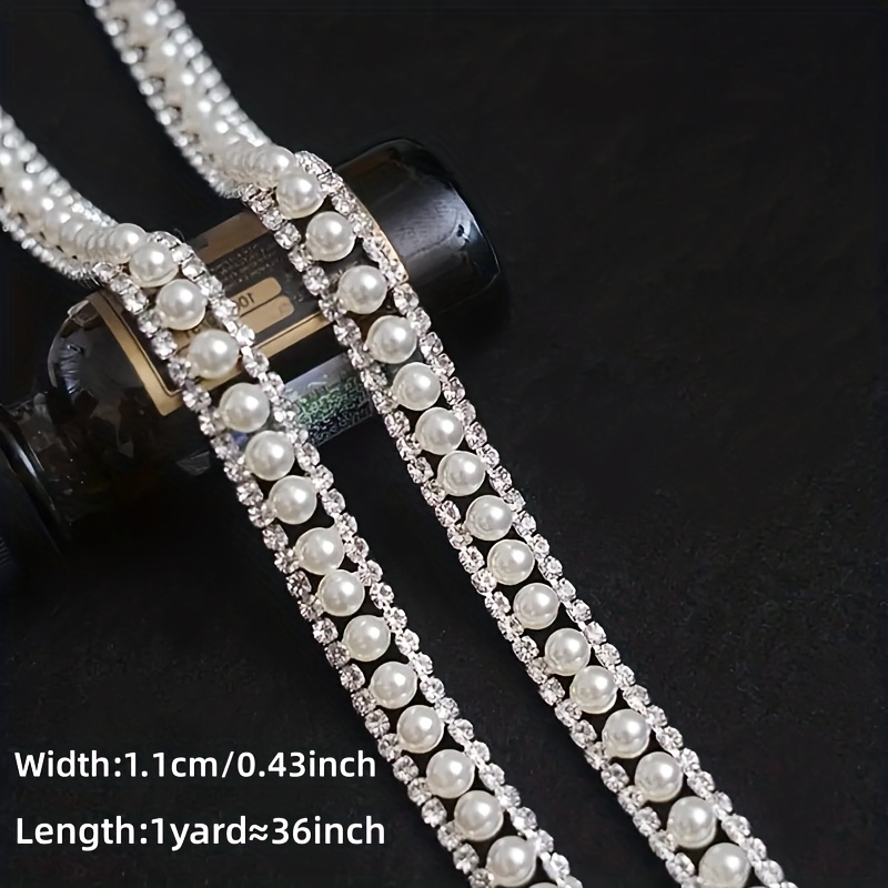 TEMU 웨딩 드레스 칼라, 모자, 여성 가방, 신발 장식, 손바느질 추가, 헤어 클립, 헤어 장식, 브라이덜 가운, 포장, 신발, 공연 의상, 우아한 라인스톤 체인 장식용 초고광택 진주 라인스톤 체인 1야드