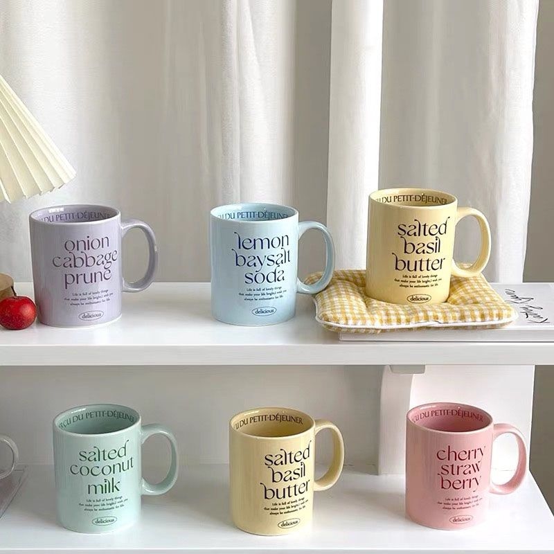 [해외] 북유럽 마카롱 레터링 도자기 머그컵 홈카페 커피잔 머그잔 5colors
