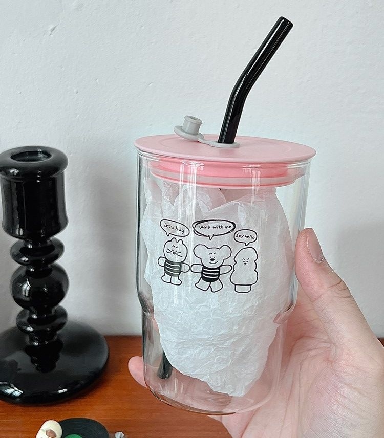 유리 캐릭터 텀블러(유리빨대포함) 대용량 550ml