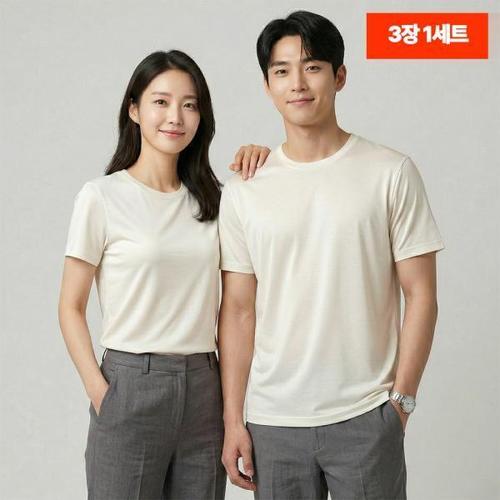 [기타 BRAND]3장 1세트 남여공용 베이직 라운드 반팔 스판티셔츠 CA3847795