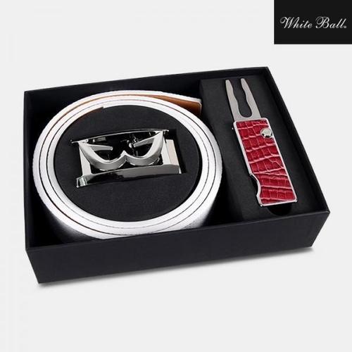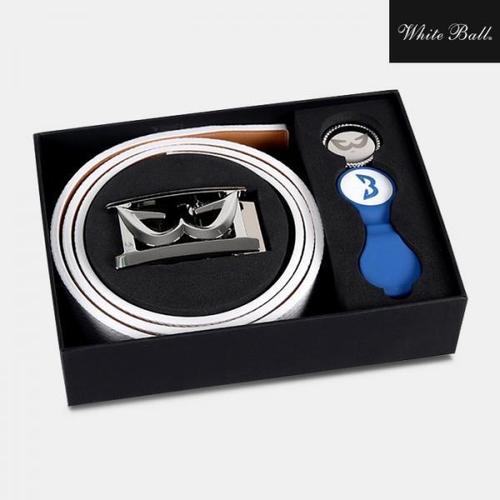 [기타 BRAND]화이트볼 소가죽 골프벨트 세트 남성용 화이트 벨트+버클+볼마커 TA3793809