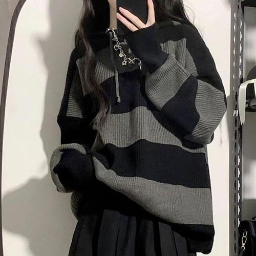 [기타브랜드]반폴라 소매 레이스포인트 긴팔 골지니트티