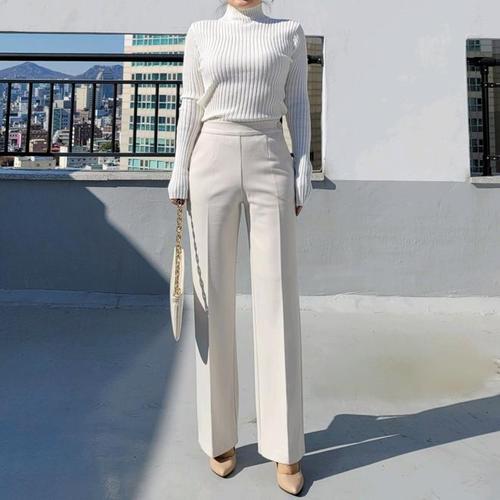 TEMU 솔리드 컬러 우아한 캐주얼 여성용 하이웨이스트 레그 팬츠