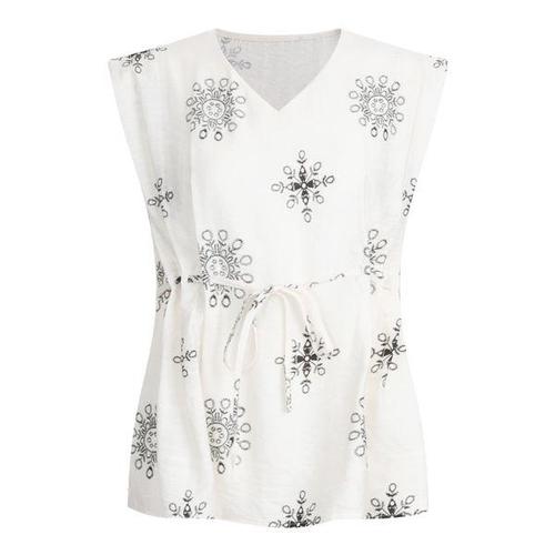 [샵앤]여성 브이넥 나염 빈티지 허리끈 민소매 블라우스 NTT-WBL-20755-아이보리