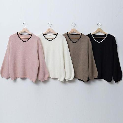 [다잇템_패션]여성 벌룬 빅사이즈 분홍색 V넥 니트