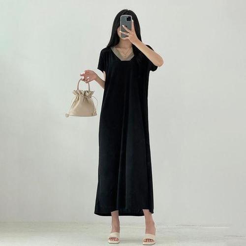 [셀러허브_여성트랜드패션]빅사이즈 507 스판브이넥배색원피스 DGLL063