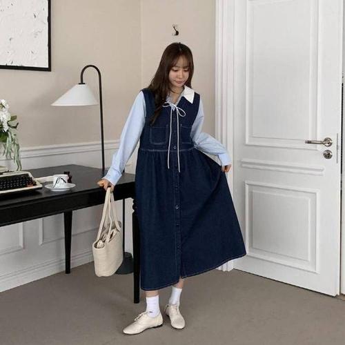 [에이치플러스몰]파니호 단추 롱 트위드 여름 셔츠 브이넥 데님