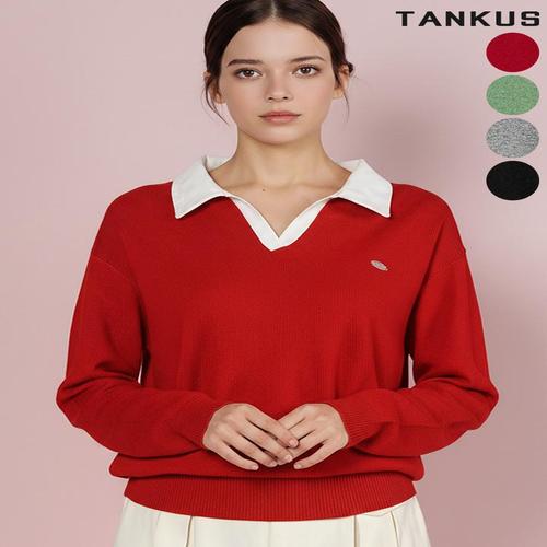 [탱커스]여성 셔츠 카라 V넥 루즈 니트