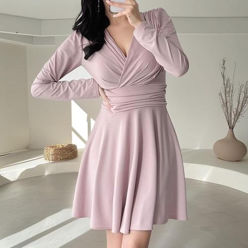 하객 브이넥 가을 슬림 프릴 미니원피스 겨울 원피스