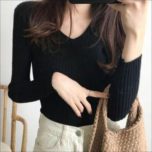 [라일리여성의류] Rly 여성 v넥 골지니트 슬림핏 베이직 긴팔티 이너티