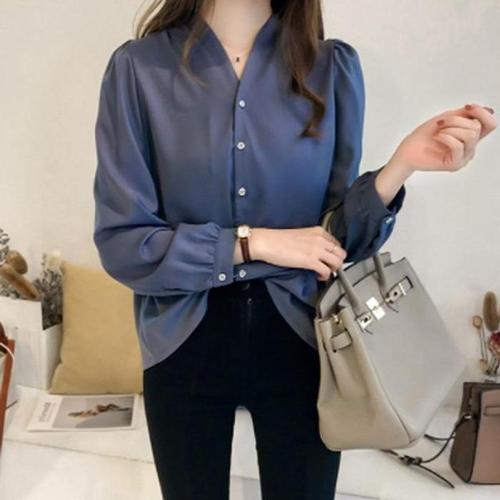 [다잇템]여자 버튼 셋업 블라우스 V넥 롱슬리브 셔츠