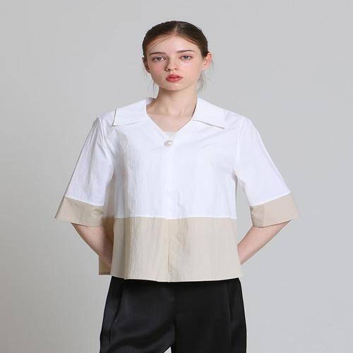 [꼼빠니아][꼼빠니아(compagna)] 브이 카라넥 배색 셔츠 블라우스(택가격 259000원)