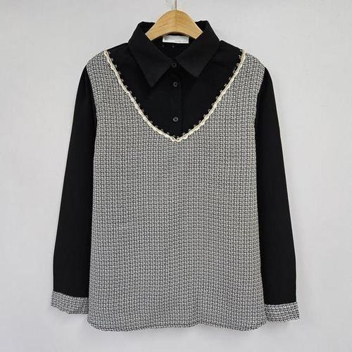[셀러허브_여성트랜드패션]빅사이즈 511 헤든트위드브이블라우스 DIRT339