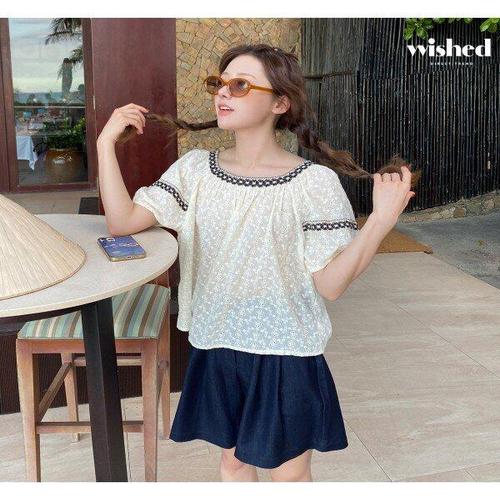 [위시드]레이스 스퀘어넥 펀칭 벌룬 블라우스 (WIAABL213)