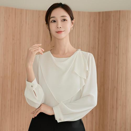 여성블라우스 숄더 카라 화이트 셔츠 하객룩 오피스룩 블라우스