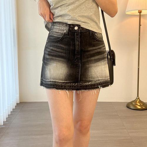 [옷자락]여성 Y2K 빈티지 워싱 블랙 데님 미니스커트
