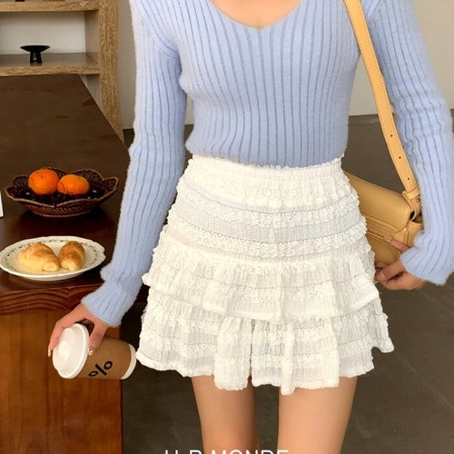 유아몽드 / 레이어드 프릴 셔링 레이스 캉캉 미니 스커트 블랙 화