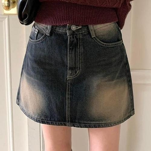 [브이와이][VY] 여자 구제치마 에이라인 워싱진 블랙진 미니스커트_15902825_588847