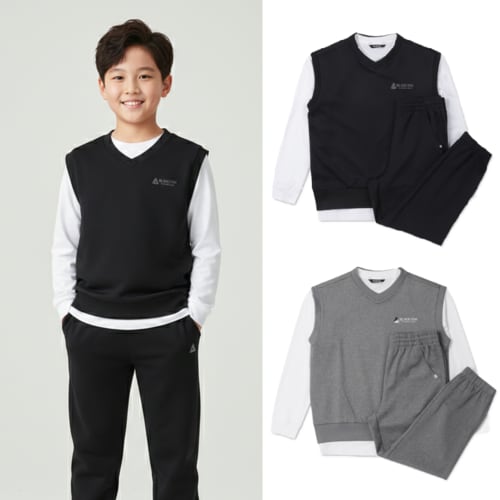 [블랙야크키즈] 신학기 특가 [정상가 149,000] 오버핏 조끼+긴팔티셔츠+조거팬츠 S플레이조끼 3PCS 세트 상품