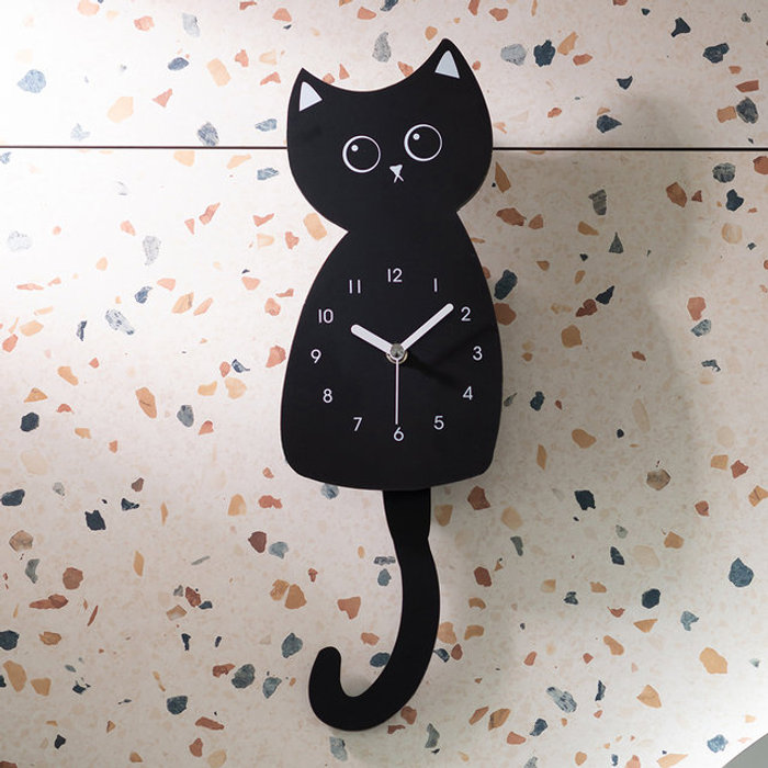 국산 플라이토 뉴 블랙캣 무소음 인테리어 추 벽시계 아이방