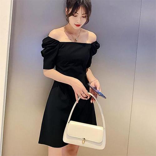 [셀러허브_여성트랜드패션]ONM 여성 원피스 여자 퍼프 벌룬 블랙 미니 원피스