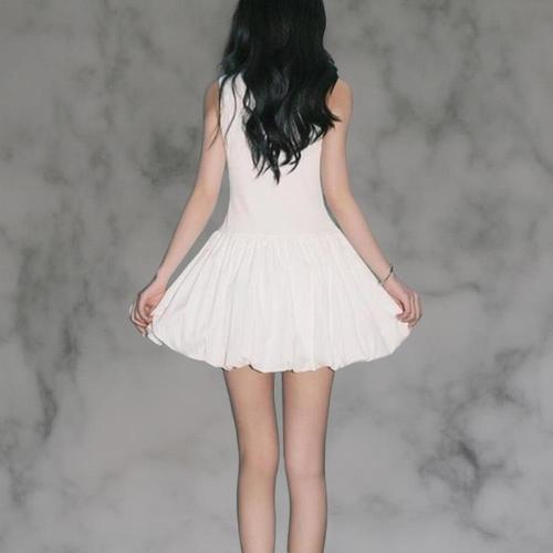 [옷자락]여성 블랙 아이보리 민소매 벌룬핏 미니 드레스