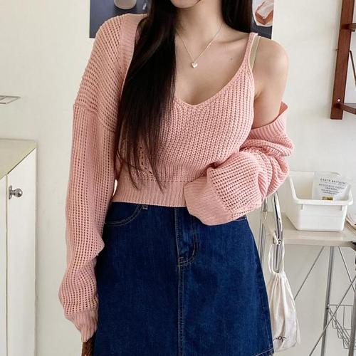 [시크블랙]쇼러아 크롭 나시 스위티볼레로 세트