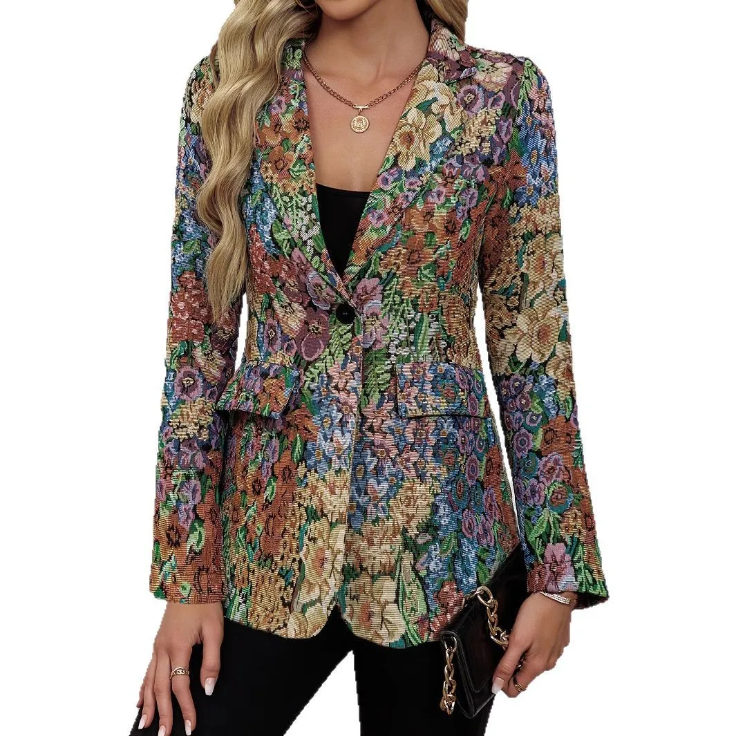 프린트 패션 슬림 여성 정장 재킷 싱글 버튼 우아한 블레이저 스플라이싱 2025 가을 신상 아우터 오피스룩 수트 코트
