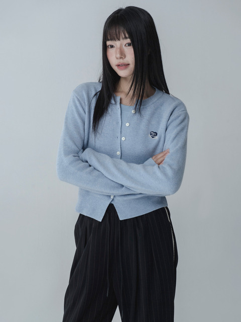 [마스 언 에브릴] 하트라인 니트 가디건_클라우디드 스카이블루