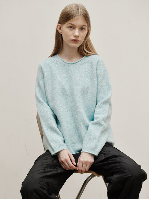 [와이오와이] 돌돌이 네크라인 울 니트_스카이블루