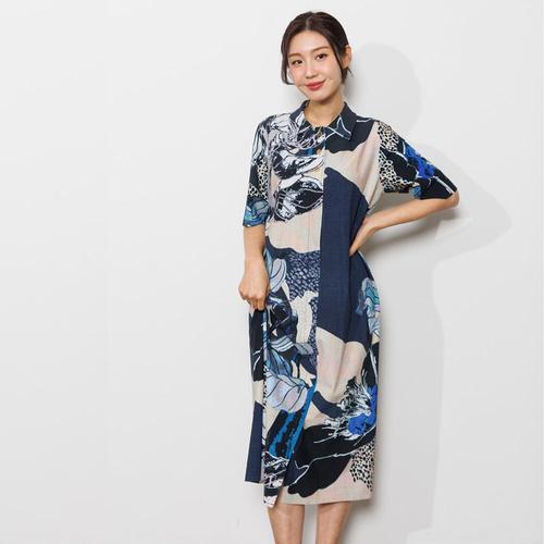 [디아스토리]프린트 카라 드레스 (CHMPDF10)-블루