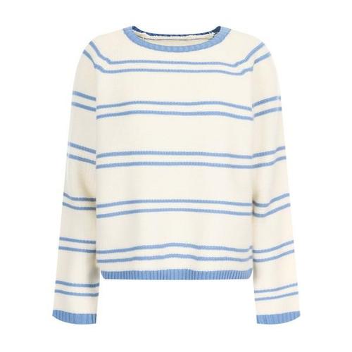 [샵앤][샵앤] 여성 라운드넥 배색 단가라 나그랑 니트 티셔츠 FRB-WKN-20310-블루