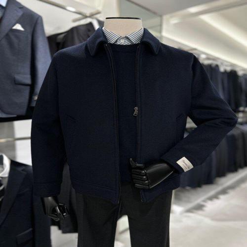[트루젠]남성 가을 겨울 네이비 프리미엄 울 혼방 네이비 숏코트 블루종 자켓