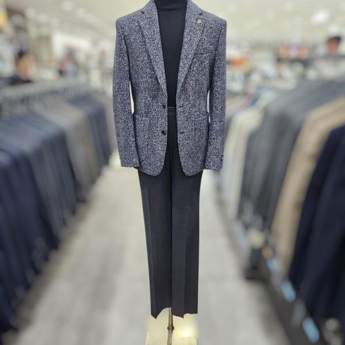 [바쏘옴므]블루 보카시 글렌체크 울실크 블렌드 트위드 콤비 자켓 WSY3JS12ABU_DG