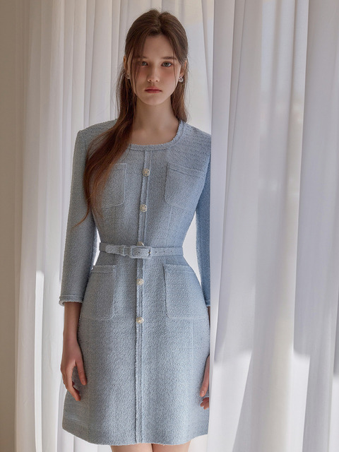 [쥴리앤칼라] SS 칼라43 피오레 트윙클 트위드 원피스 스카이블루