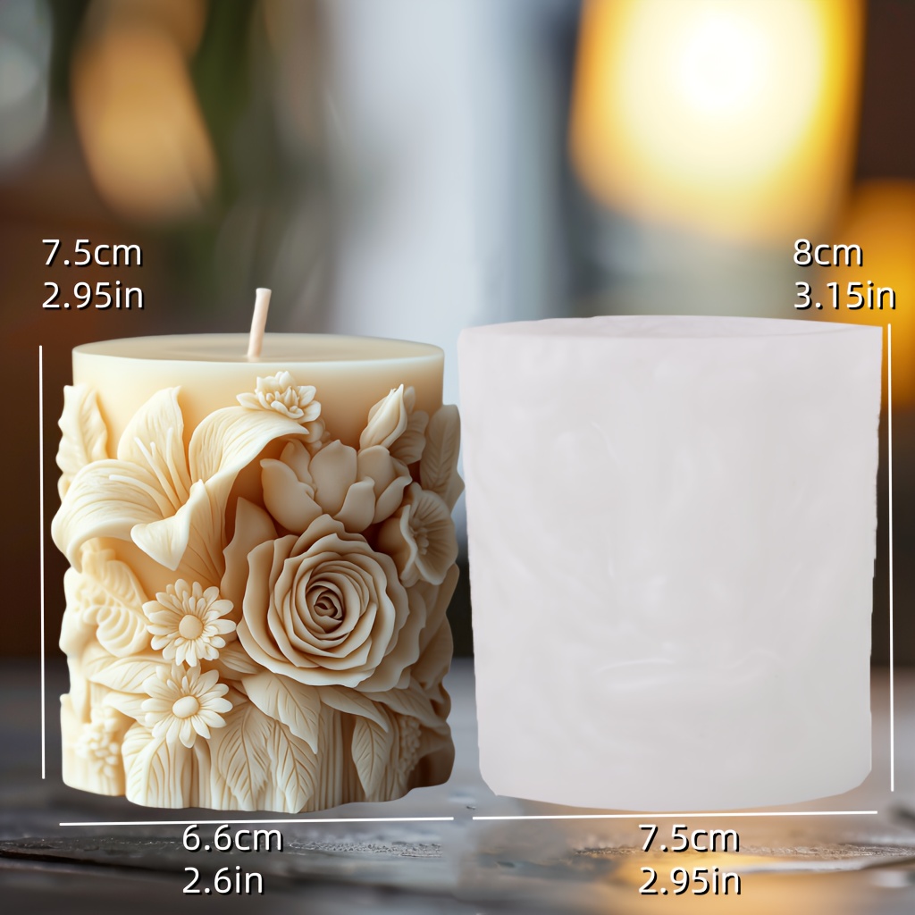 TEMU 실리콘 캔들 몰드 로즈 실린더 캔들 몰드, 3D 꽃 디자인, 아이스 왁스 비누 레진 공예에 적합, 불규칙한 모양, 예술 결혼식 홈 장식 캔들 만들기 몰드 - DIY 실리콘 몰드 로즈 플라워 컬럼 아로마테라피 캔들 석고 향수 돌 클레이 장식 몰드