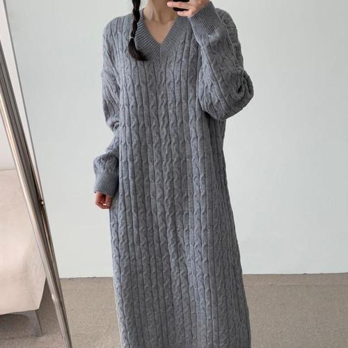[옷자락] [시즌오프]브이넥 물결 77원피스 비스코스 니트 롱원피스_5