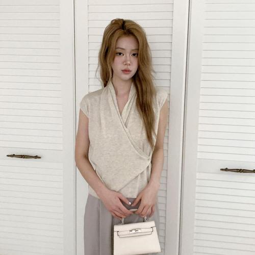 [미라클세븐]여성 비스코스 혼합 소재 브이넥 랩형 민소매 니트 베스트