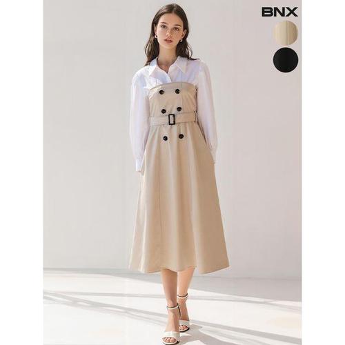 [BNX]여성 트렌치 셔츠 벨트 원피스