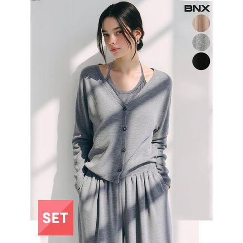[BNX]여성 일체형 홀터넥 레이어드 가디건 셋업