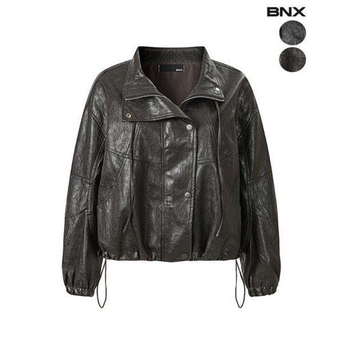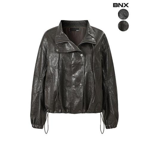 [BNX]여성 유광 하이넥 스트링 레더 자켓