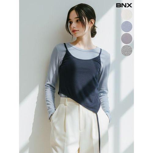 [BNX]여성 사선 뷔스티에 레이어드 티셔츠